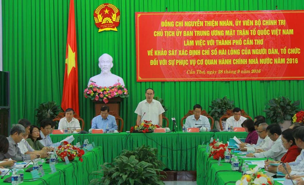 Chiều 28-9, đoàn khảo sát do Chủ tịch Ủy ban Trung ương MTTQ Việt Nam Nguyễn Thiện Nhân dẫn đầu đã làm việc với UBND TP Cần Thơ về xác định chỉ số hài lòng của người dân, tổ chức đối với sự phục vụ của cơ quan hành chính nhà nước.