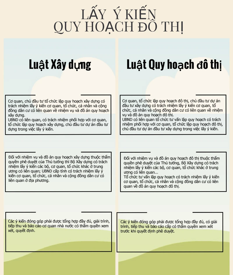 Điều 20 Luật Quy hoạch đô thị (về trách nhiệm lấy ý kiến về quy hoạch đô thị) quy định: