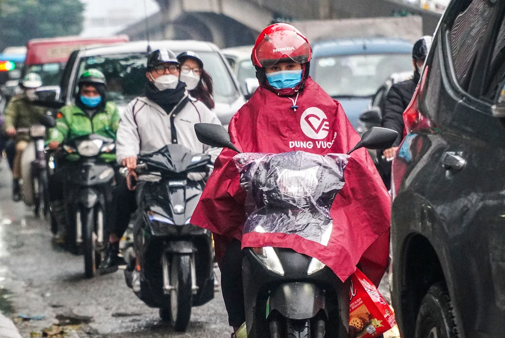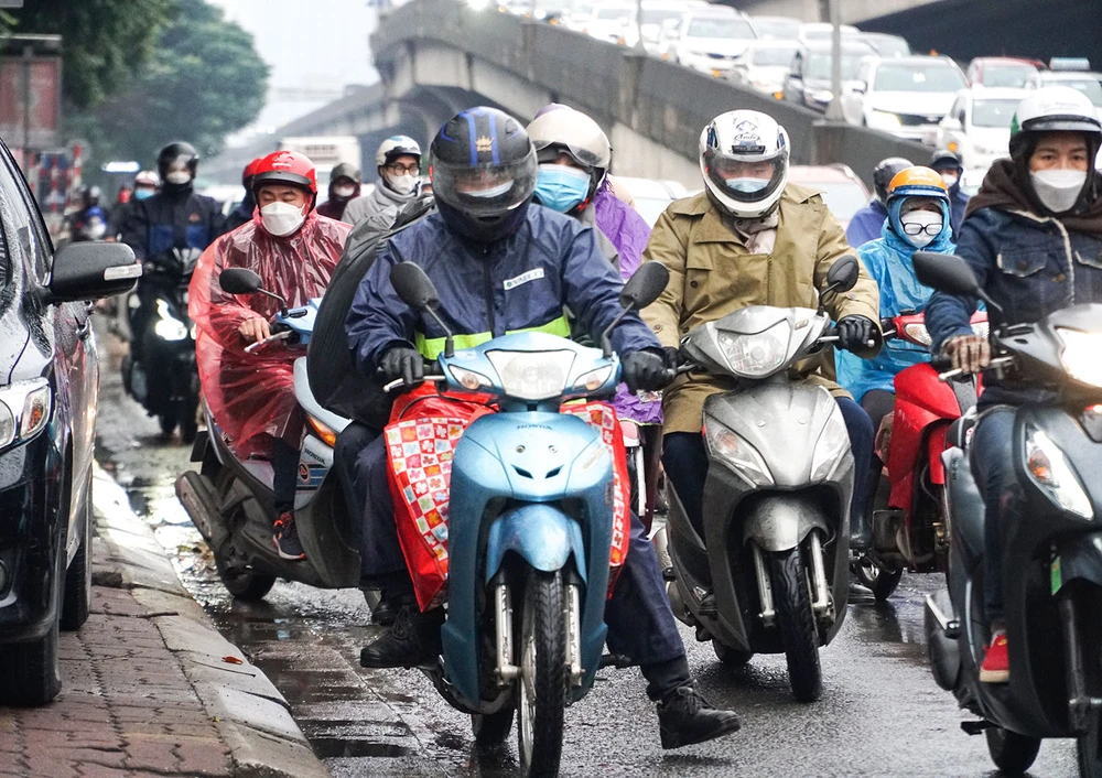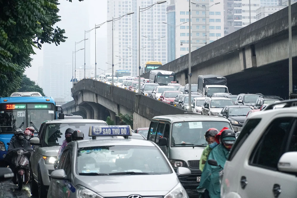Dòng phương tiện có lúc nhích từng chút một, một số người chọn giải pháp leo cả lên vỉa hè để di chuyển.