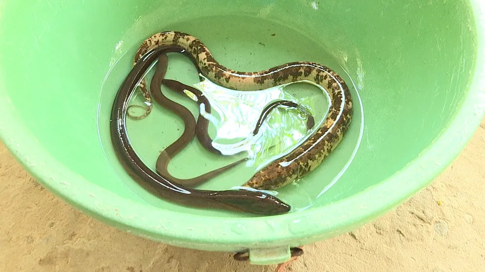Lươn rằn ri kỳ lạ do anh Đệ bắt được.