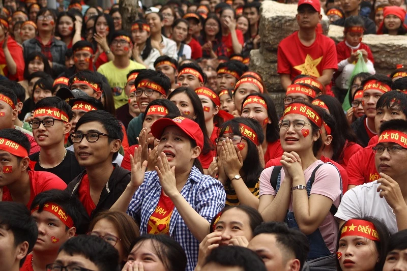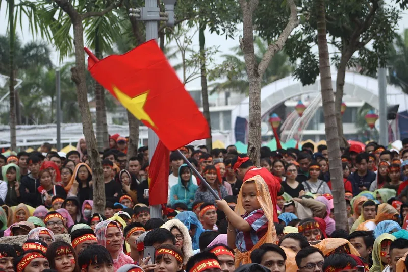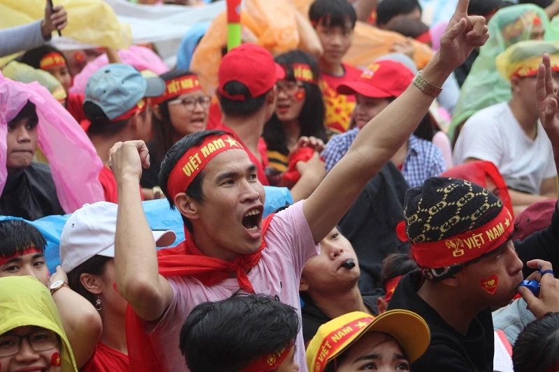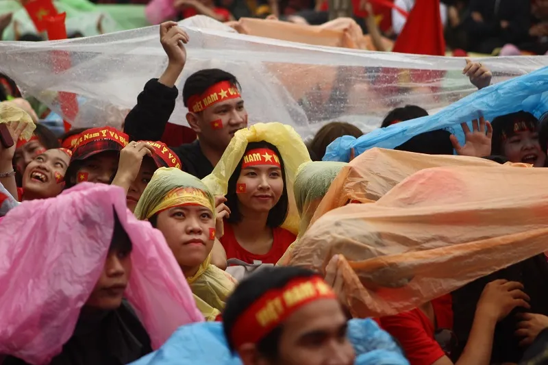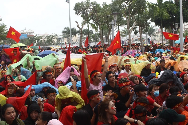 Nhiều người dân đội mưa cổ vũ cho đội tuyển U23.