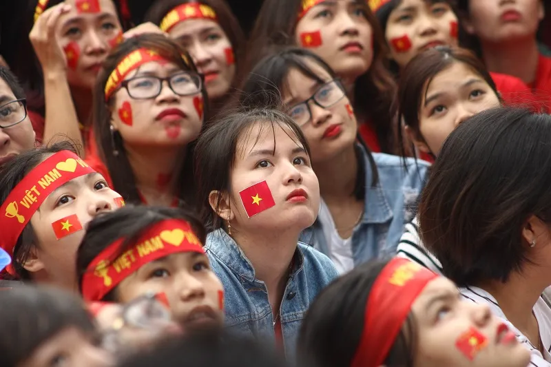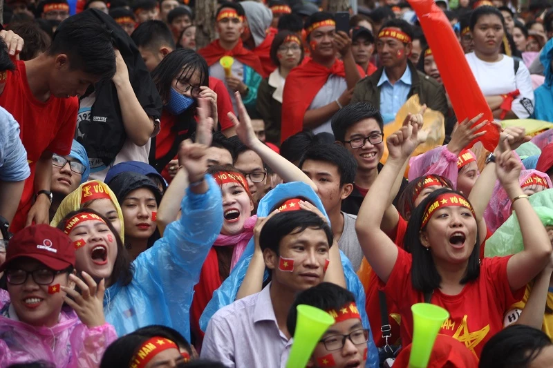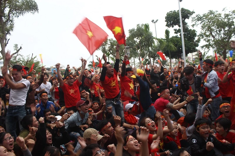 Người dân vui mừng khi Quang Hải gỡ hòa 1-1.