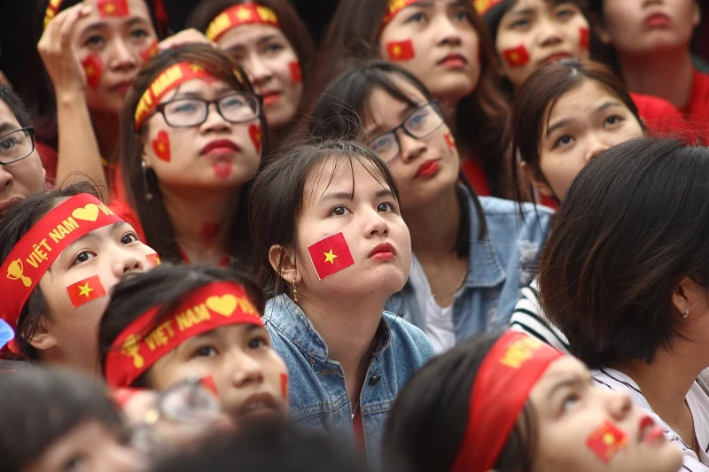 Các cổ động viên chăm chú theo dõi trận đấu.