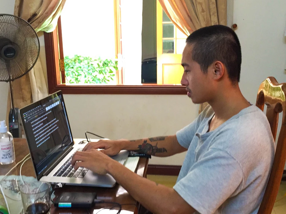 Anh Tú Anh làm thêm công việc online để tăng thu nhập trong thời gian giãn cách xã hội. Ảnh: BT