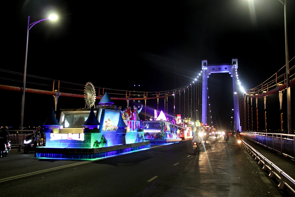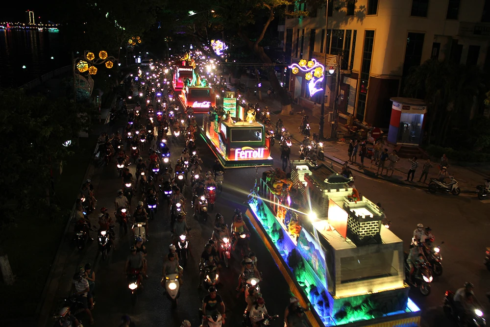 Chín xe hoa đi qua các tuyến đường trung tâm làm sôi động cả TP Đà Nẵng. Ảnh: N.TRI