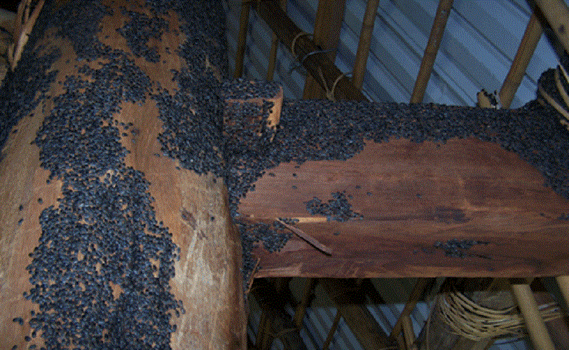 Bọ đậu đen bu kín trên cột nhà. Ảnh minh họa