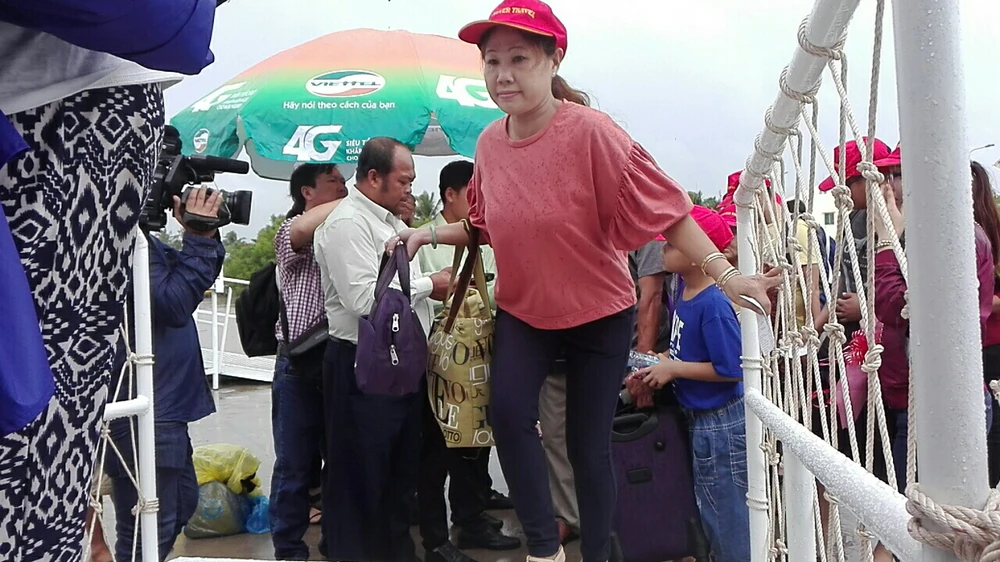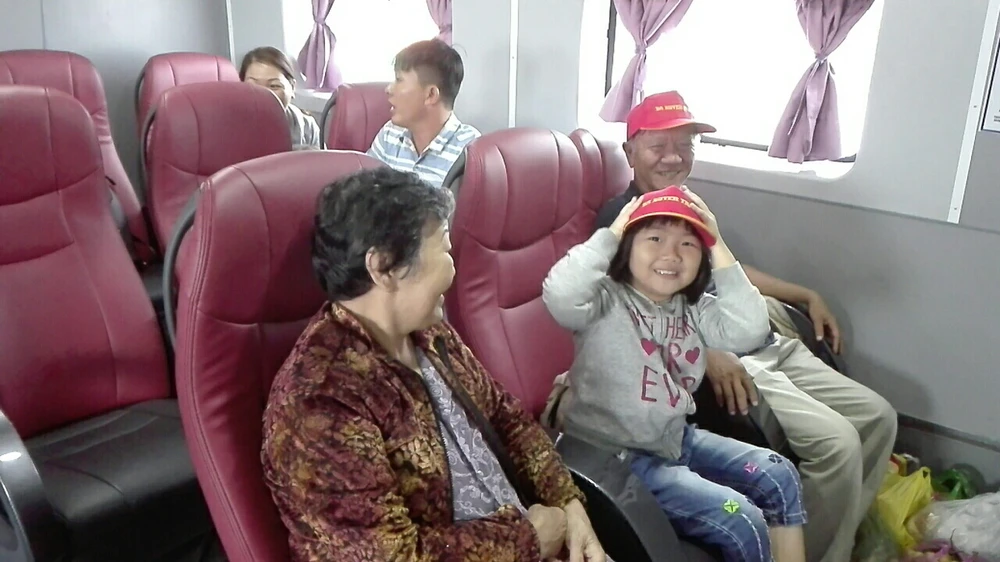 Hành khách đi chuyến tàu đầu tiên Trần Đề (Sóc Trăng)-Côn Đảo (Bà Rịa-Vũng Tàu). Ảnh: H.DƯƠNG