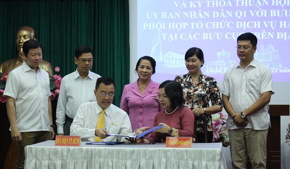 UBND quận 1 đã ký kết thỏa thuận với Bưu điện TP.HCM. Ảnh: L.THOA