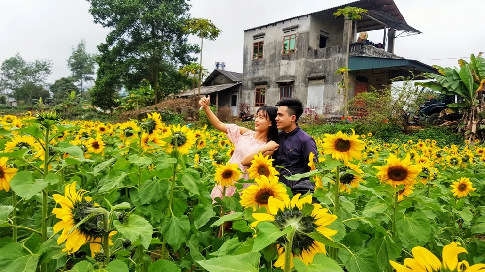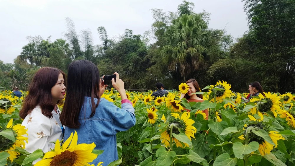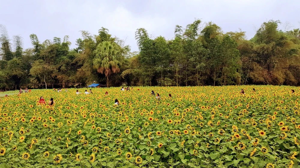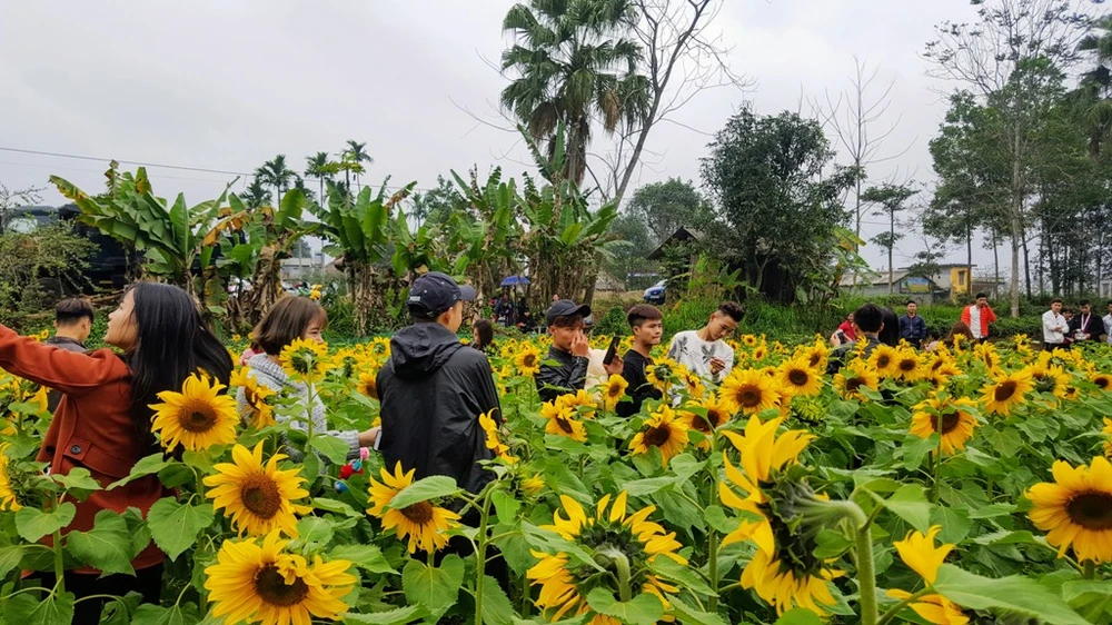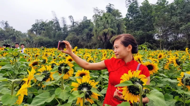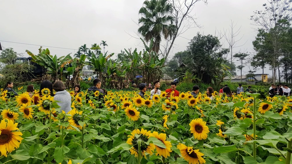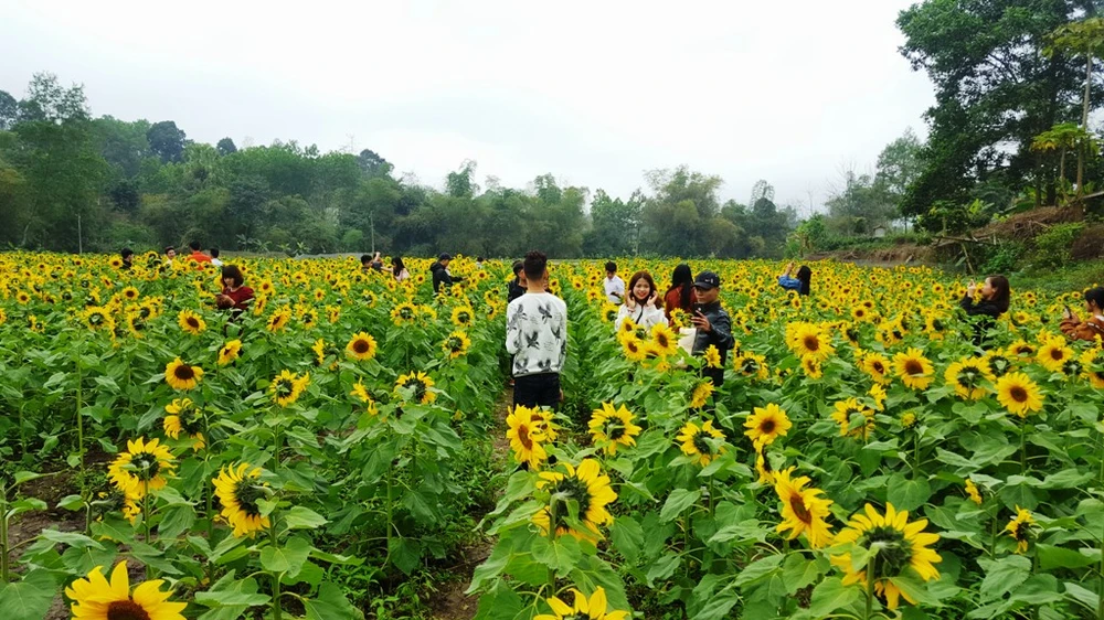 Vườn hoa hướng dương thu hút hàng ngàn lượt khách tới chụp ảnh.