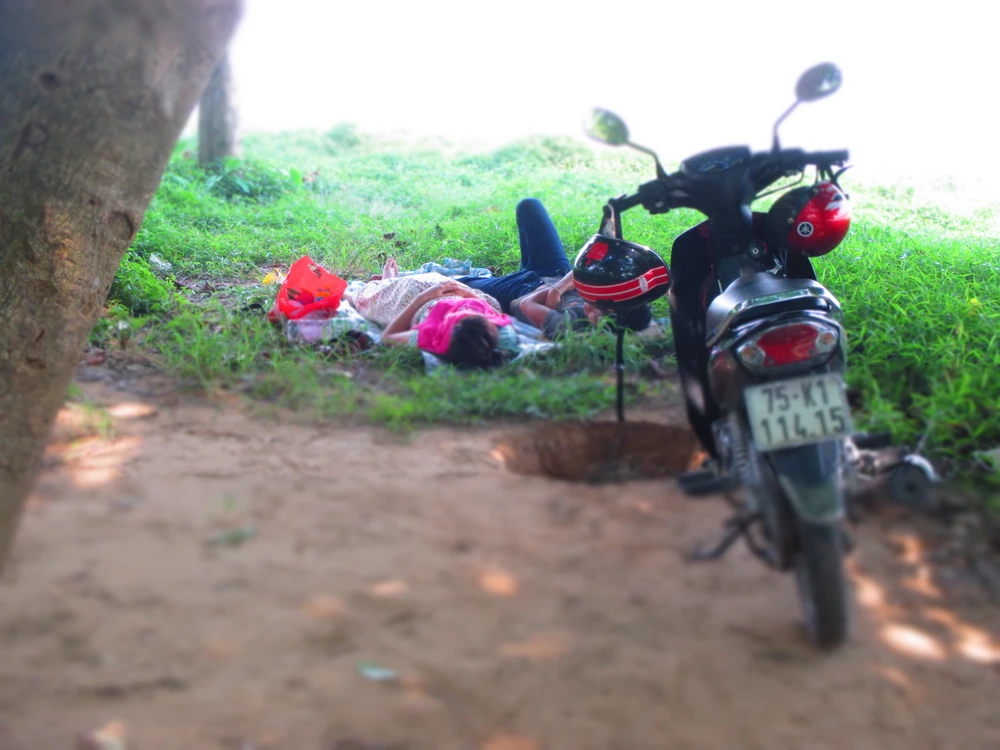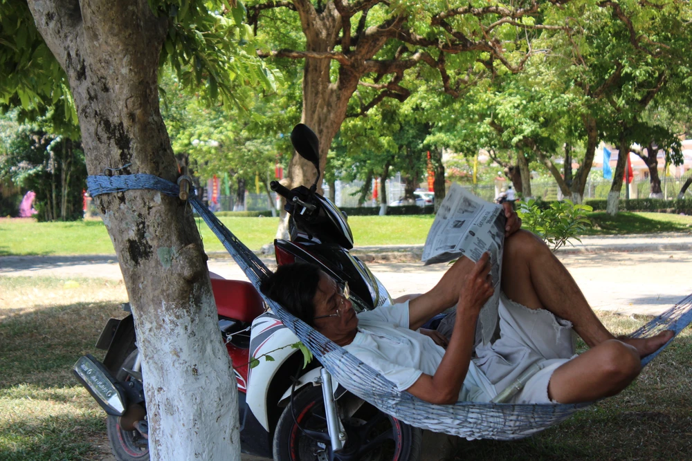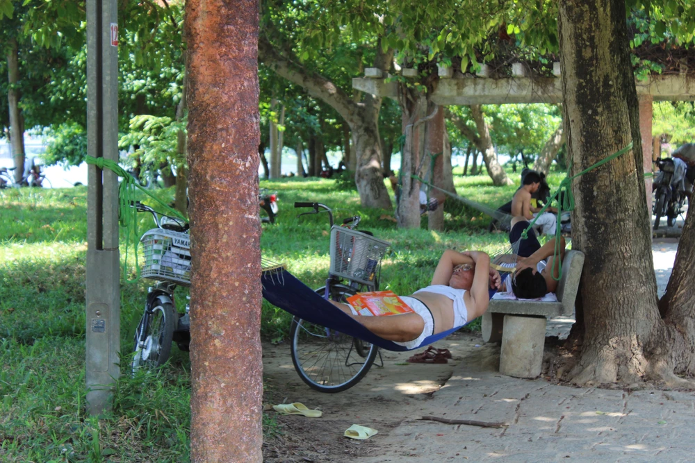 Anh Phan Văn Thận (SV trường ĐH Sư Phạm Huế) cho biết: “Mấy ngày nay, buổi trưa tôi với các bạn ở đây thường ra đây nghỉ ngơi cho mát và chiều đi học lại chứ ở phòng trọ chật hẹp với mái tôn nóng lắm không chịu được”.
