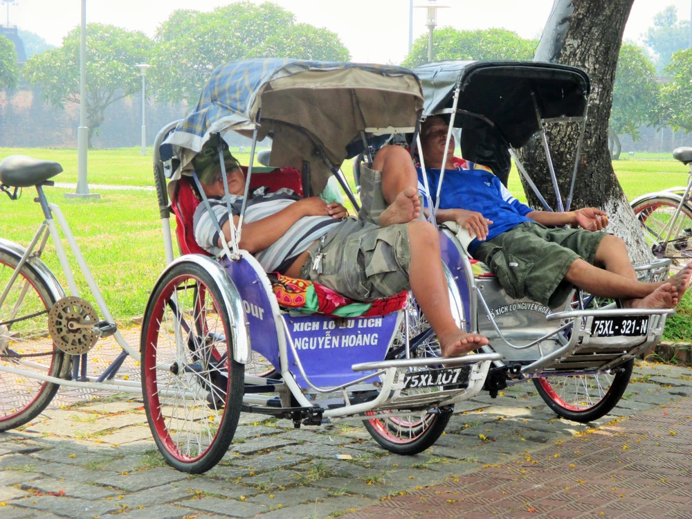 Nhiều người chạy xích lô tranh thủ nghĩ trưa.