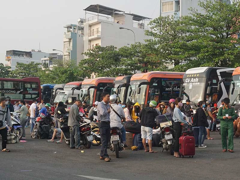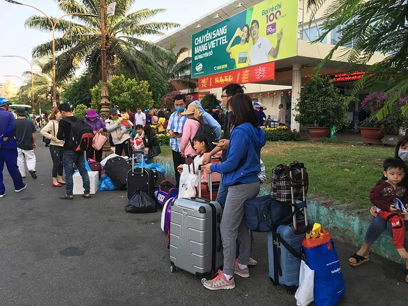 | Lượng hành khách về bến sẽ tăng cao và dự kiến cao điểm vào mùng 8, 9, 10 âm lịch. Bến xe Miền Đông sẽ tập trung toàn bộ nhân lực để phục vụ khách hàng. Ngày cao điểm nhất có thể lên đến 55.000 lượt hành khách xuất bến. Theo đó, bến xe cũng phối hợp với các đội CSGT để kịp thời điều động và giải tỏa phương tiện tại các khu vực có ùn tắc. Ông NGUYỄN HOÀNG HUY, Phó Giám đốc Bến xe Miền Đông Dự kiến 10 ngày sau tết, lượng xe khách sẽ đạt khoảng 16.000 xe và lượng hành khách đạt 365.000 người. Lượng hành khách về bến tăng cao và dự kiến cao điểm sẽ rơi vào mùng 6, 7, 8, 9, 10 âm lịch. Trong những ngày cao điểm, bến sẽ điều động xe của tuyến ít khách sang tuyến đông khách hoặc liên hệ với các đơn vị khác nhằm đảm bảo cung ứng đủ xe giải tỏa khách kịp thời ra vào bến. Ông ĐẶNG NGUYỄN NGUYÊN HUÂN, Ngày 29-1 (mùng 5 tết), ga quốc nội sân bay Tân Sơn Nhất tiếp nhận lượng hành khách khá lớn. Mặc dù chưa phải là ngày cao điểm sau kỳ nghỉ lễ tại sân bay Tân Sơn Nhất, song lượng khách đổ về đây đã bắt đầu đông đúc. Ghi nhận tại ga đến trong nước, trong mùng 5 đã có nhiều chuyến bay từ nhiều địa phương đáp xuống. Hàng ngàn hành khách chen chúc di chuyển một cách khó khăn. Ở khu vực đợi hành lý ký gửi, nhiều hành khách xếp hàng chờ rất lâu mới lấy được đồ. |