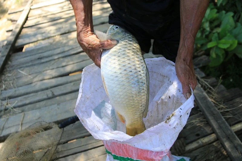 Những con cá được người dân vớt lên
