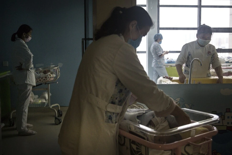 Y tá chăm sóc một em bé sơ sinh tại một bệnh viện phụ sản ở Vũ Hán ngày 12-3. Ảnh: GETTY IMAGES