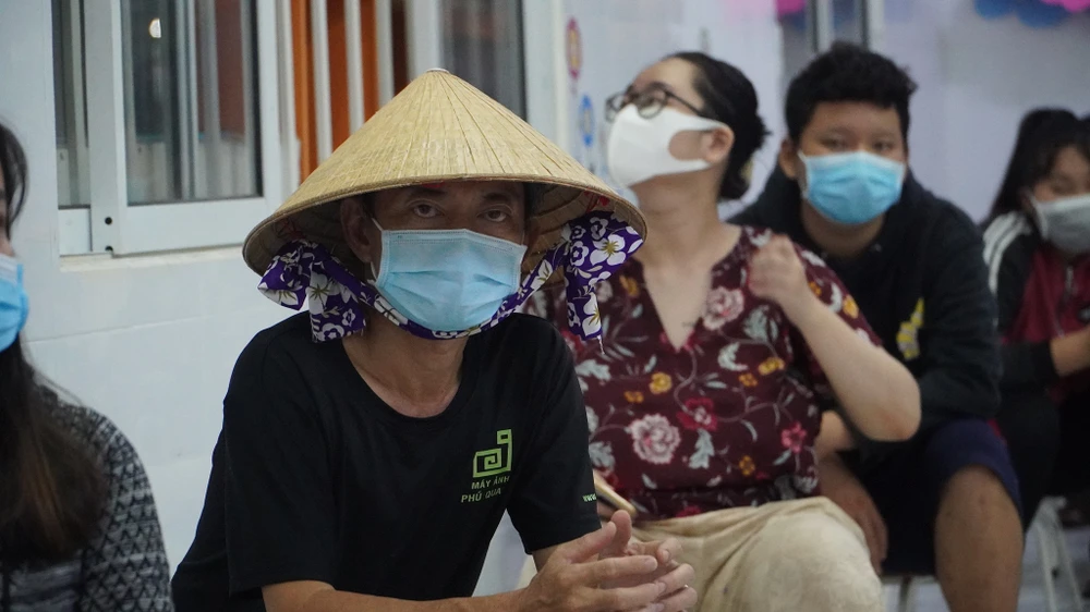 Ghi nhận tại trường mầm non Vàng Anh trên đường Hưng Phú, phường 9, quận 8, TP.HCM nhiều người dân đã tranh thủ đến sớm, xếp hàng giữ khoảng cách để lấy mẫu. Ảnh: MINH TÂM