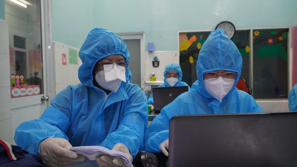Mỗi điểm khoảng 20 nhân viên y tế phân công từng nhiệm vụ khác nhau để thực hiện công tác lấy mẫu cho người dân. Ảnh: MINH TÂM
