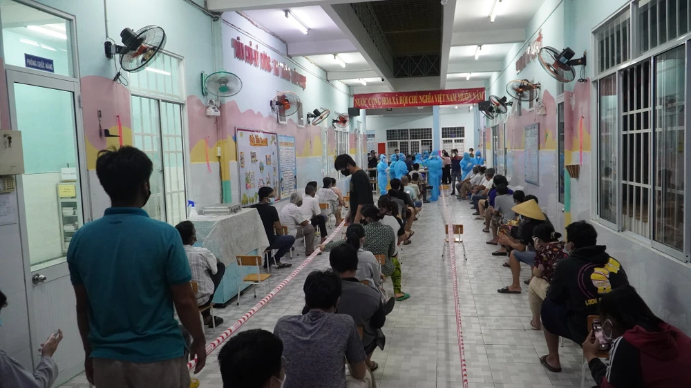 Theo bà Hồng Đào, chủ tịch UBND phường 9, quận 8 cho hay tại khu vực phường 9 chia làm 7 điểm lấy mẫu. Dự kiến sẽ huy động khoảng hơn 20 nghìn dân đến xét nghiệm. Công tác lấy mẫu sẽ được phường tổ chức xuyên suốt trong đêm nay. Ảnh: MINH TÂM