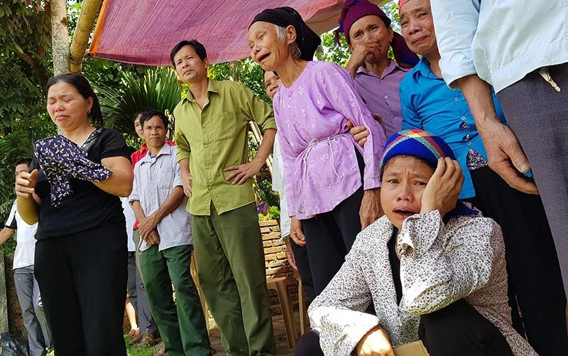 Người dân địa phương đau xót trong ngày tiễn đưa Thiếu tá Vi Văn Nhất .
