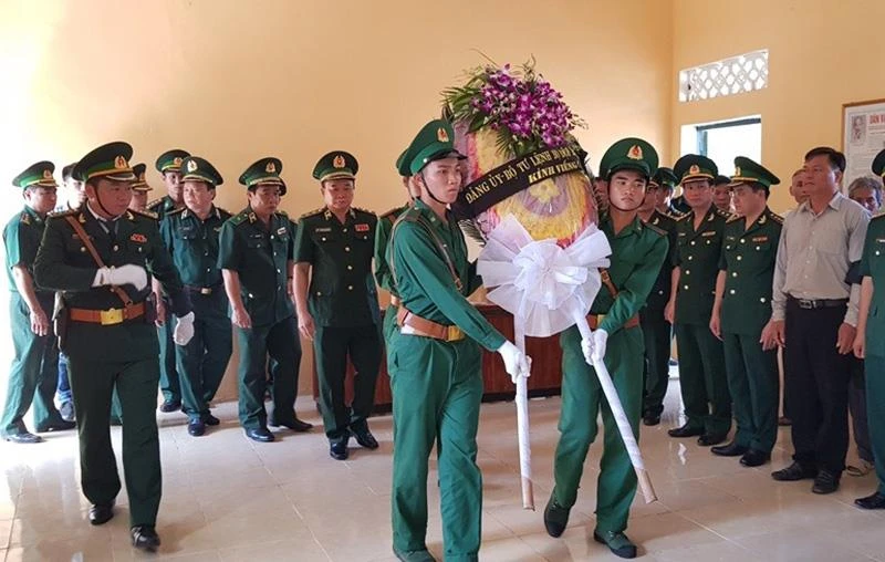 Trung tướng Hoàng Xuân Chiến, Tư lệnh Bộ đội biên phòng cùng nhiều lãnh đạo, BĐBP, chiến sĩ và người dân địa phương tại lễ truy điệu Thiếu tá Vi Văn Nhất.