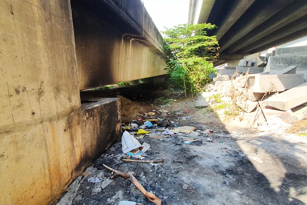 Cách đó không xa cũng xuất hiện tình trạng tương tự là tại cầu Bình Lợi (phường Hiệp Bình Chánh, TP Thủ Đức), khu vực vòng xoay dưới gầm cầu vượt cũng xuất hiện nhiều đống tro sau khi đốt rác.