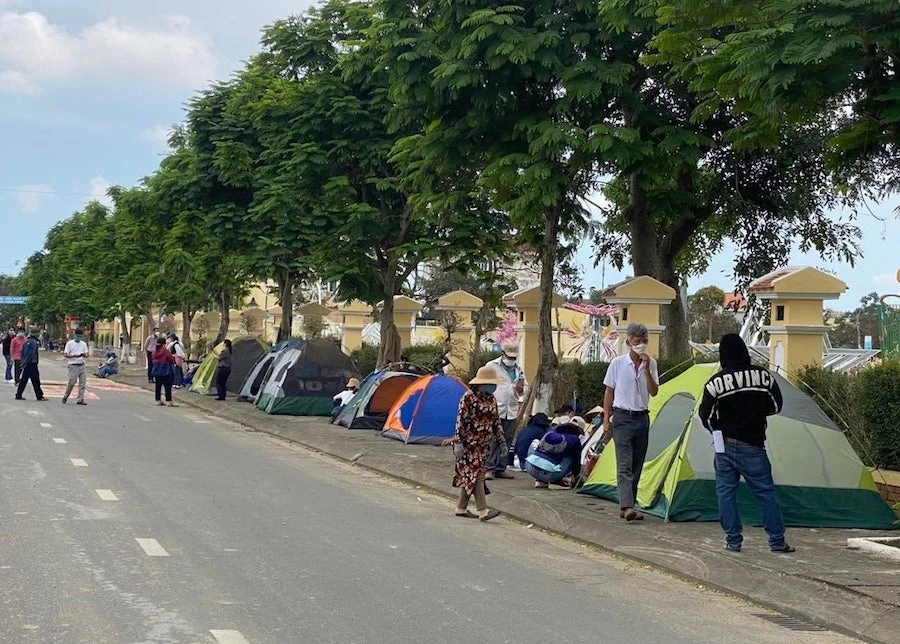 Tại hiện trường, nhiều lều bạt được dựng trên lề đường, gần trung tâm hành chính thị xã Điện Bàn. Những người này mang theo băng rôn với nội dung tố cáo Công ty Bách Đạt An lừa đảo, đề nghị cơ quan chức năng can thiệp bảo vệ quyền lợi.