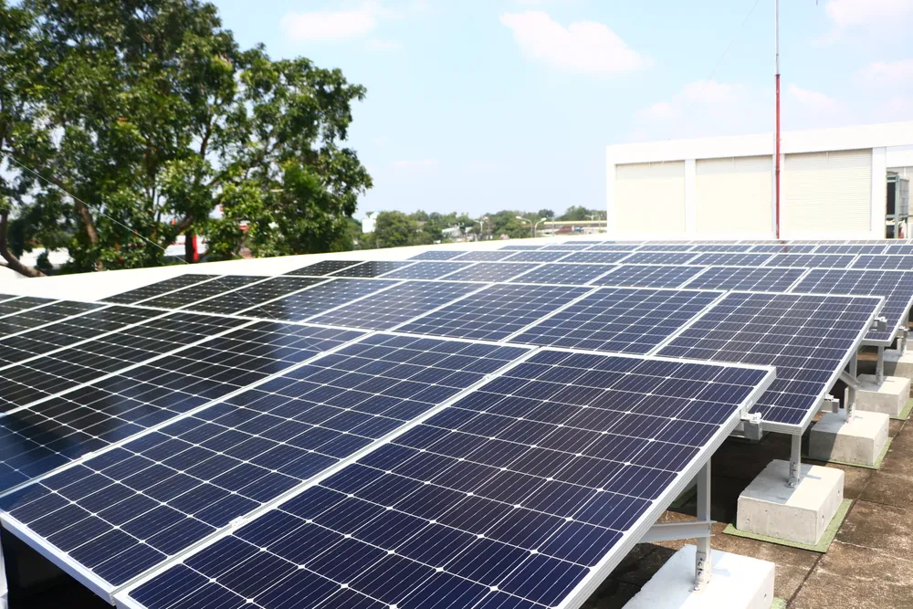 Các tấm pin năng lượng mặt trời được lắp đặt trên nóc tòa nhà Vsip.