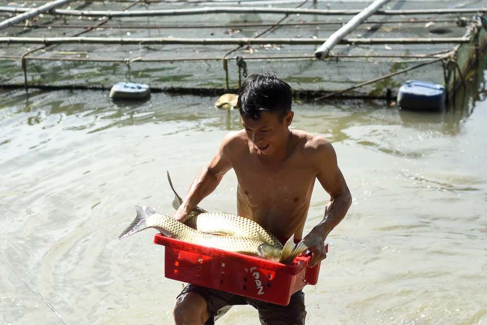 Mỗi con cá trắm cỏ nặng khoảng 5kg. Ảnh: NGUYỄN DO