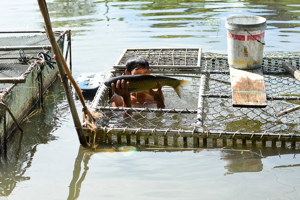 "Cá chết đã được nuôi hơn 1 năm, có cân nặng khoảng trên dưới 5kg, thời điểm này có thể thu hoạch được rồi nhưng gia đình muốn để giành lại khoảng tháng sau bán để kiếm tiền mua sách vở và nộp tiền cho con ăn học. Giờ thì coi như trắng tay cả rồi!" - anh Trình buồn bã nói.