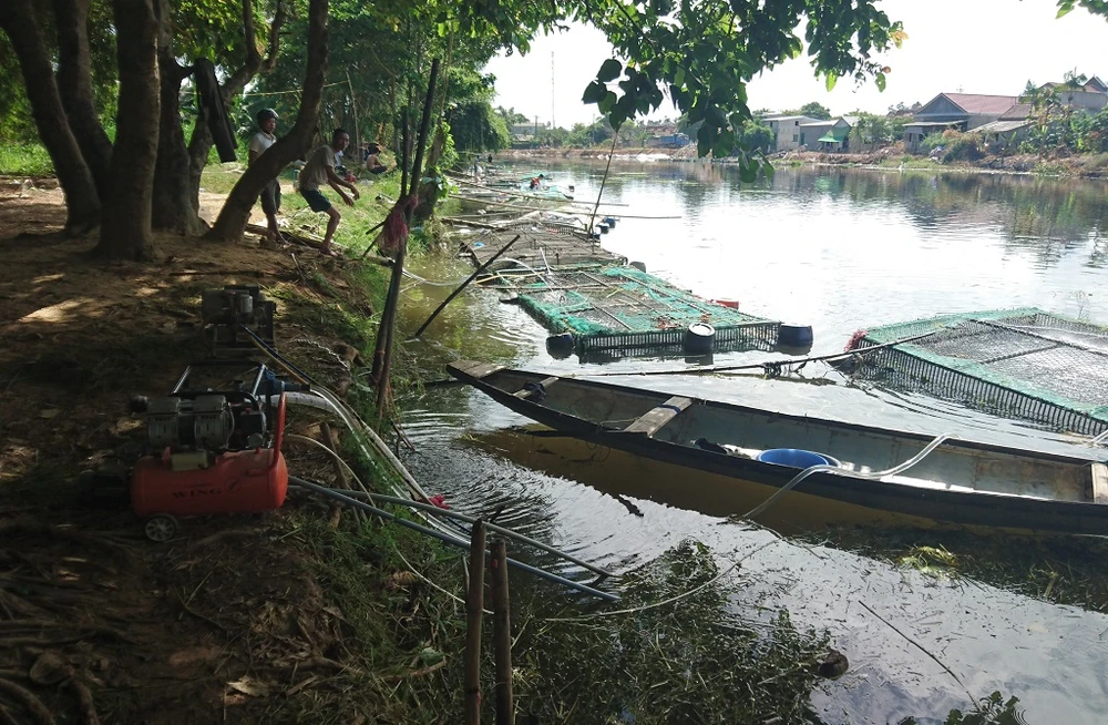 Tại thôn La Vân Thượng (xã Quảng Thọ, huyện Quảng Điền) là địa phương xuất hiện cá lồng chết đầu tiên, đến sáng hôm nay gần như các lồng cá đều trống không. Trên mặt sông, xuất hiện nhiều con cá bốc mùi trôi dạt.