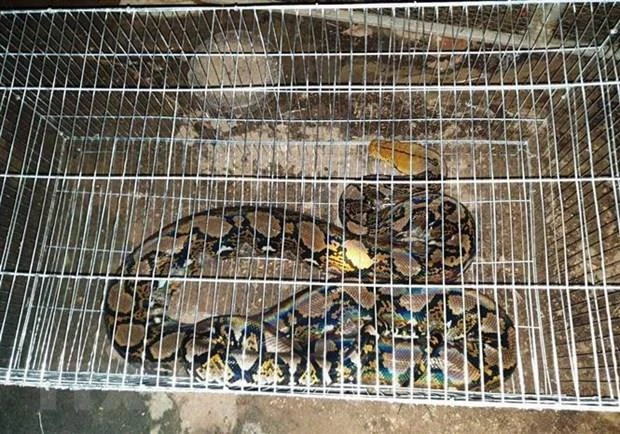 Cá thể trăn gấm quý hiếm nặng khoảng 20 kg, dài 4 m. Ảnh: TTXVN