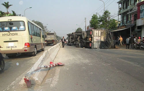 Trước đó vào thời gian trên, xe tải 75C-01804 do tài xế Trần Như Nguyện (45 tuổi, ngụ xã Phú Thượng, Phú Vang, Thừa Thiên – Huế) điều khiển chạy hướng Bắc- Nam, chở 14 tấn dưa từ Đắk Lắk ra Thừa Thiên – Huế. Khi đến vị trí trên, tài xế bị lạc tay lái làm xe lao lên con lươn và lật ngã bên đường. Vụ tai nạn chỉ khiến tài xế bị thương nhẹ.