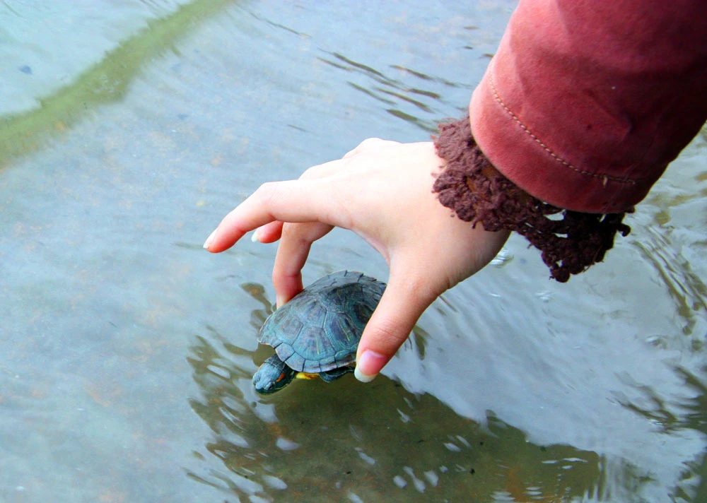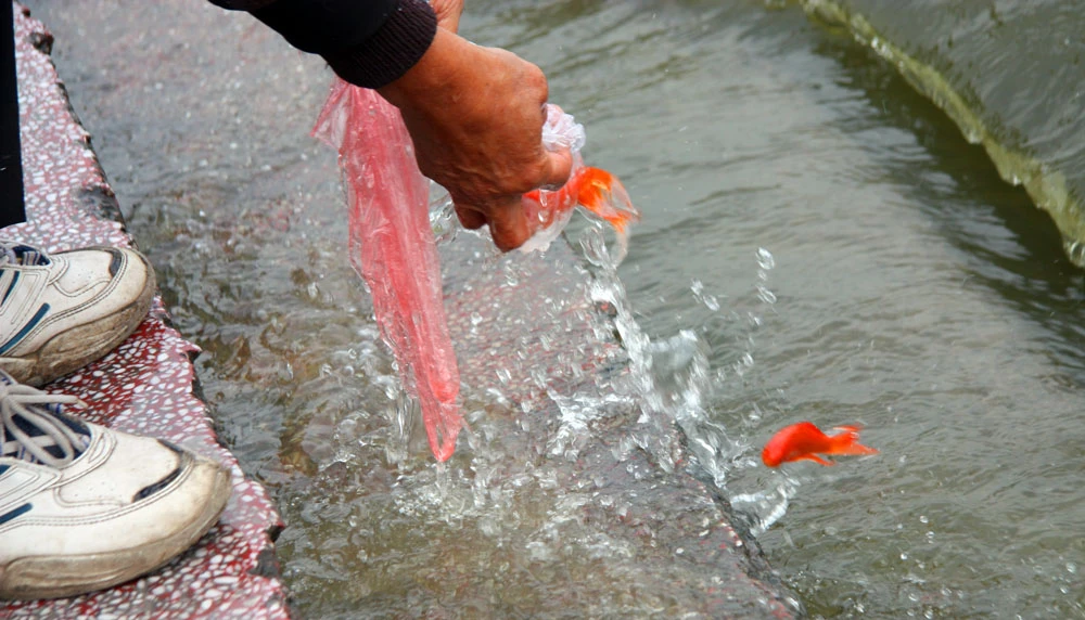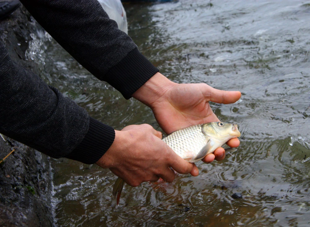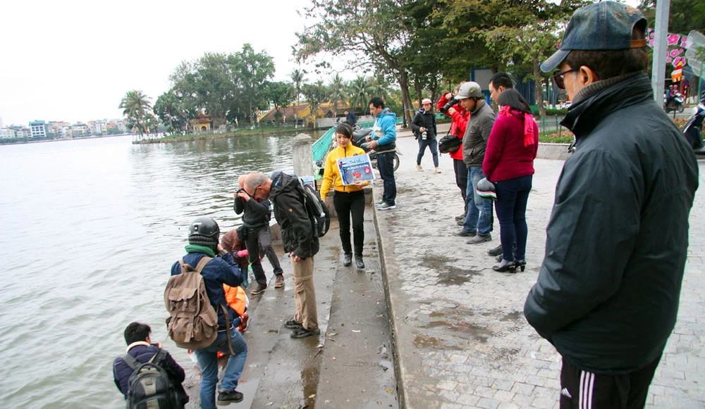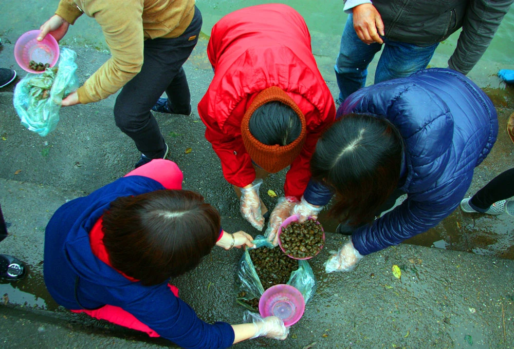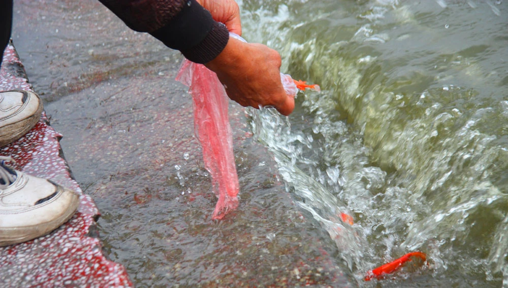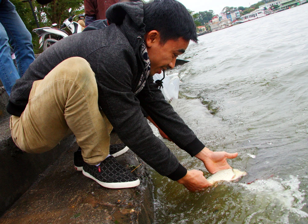 Thầy cho biết đã 5-6 năm nay, cứ vào ngày này là thầy lại tình nguyện qua đây để hướng dẫn người dân phóng sinh.