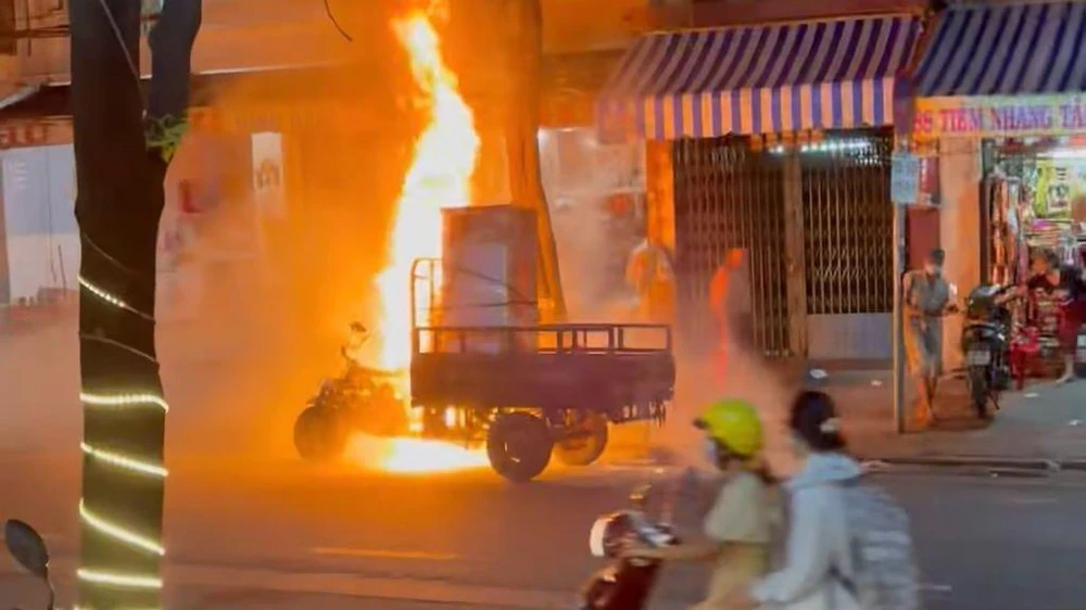 (PLO)- Chiếc xe ba gác máy đang lưu thông trên địa bàn quận 11 thì bốc cháy dữ dội và được tổ liên gia an toàn phòng cháy, chữa cháy cộng đồng dập tắt.