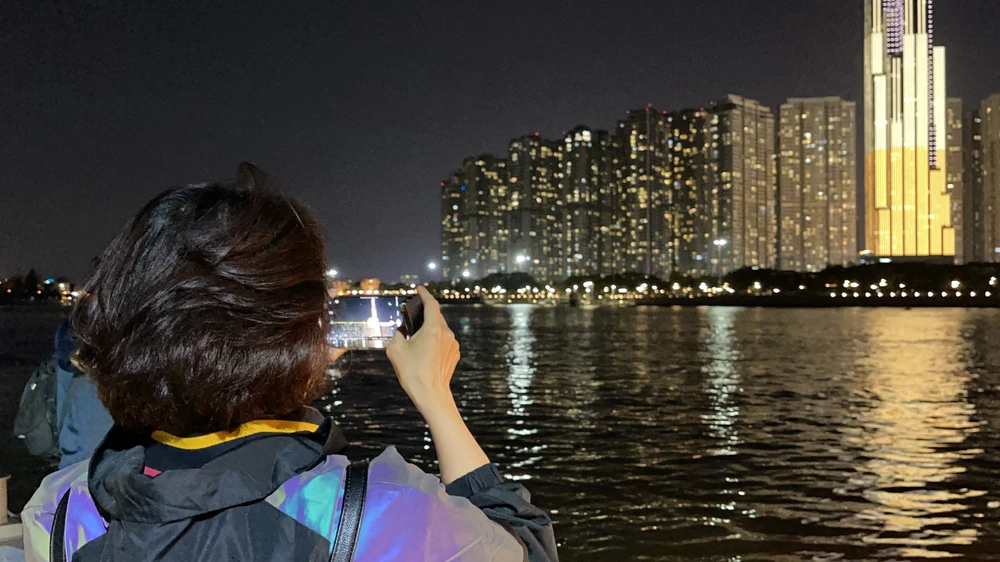 Gió sông mát lạnh, kèm ánh đèn rực rỡ từ các tòa cao ốc đã thu hút người dân tham gia. Ảnh: ĐT.
