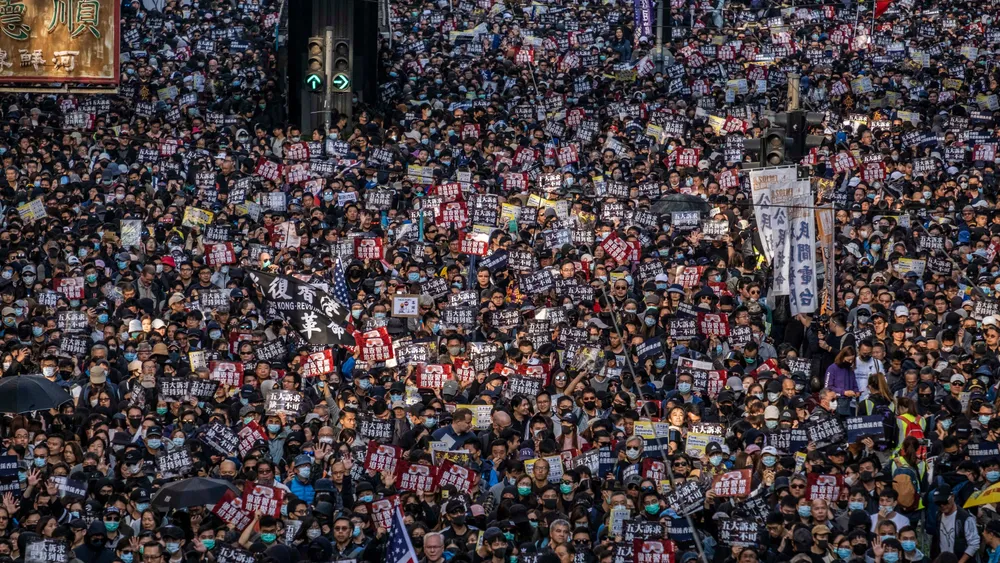 Đám đông vừa đi vừa hô to "5 yêu cầu, không trừ cái nào", đề cập đến những yêu cầu của người biểu tình đối với chính quyền, gồm rút hoàn toàn dự luật dẫn độ, cải cách tiến trình bầu cử, trưởng đặc khu Carrie Lam từ chức, điều tra cảnh sát dùng vũ lực với người biểu tình, rút cáo buộc nổi loạn và thả những người biểu tình bị bắt.