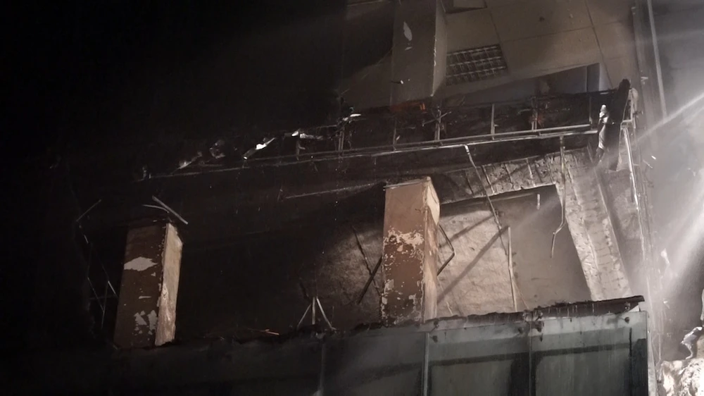Hiện trường vụ cháy ngôi nhà bảy tầng. Ảnh: BÙI TOÀN.