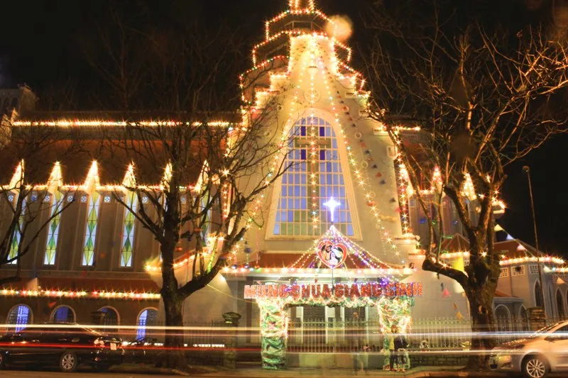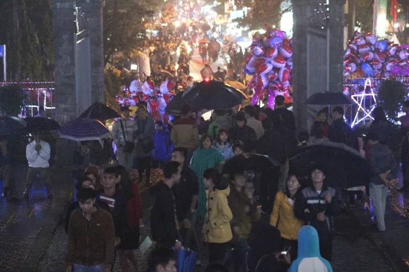 Người dân Huế đội mưa đi đón Giáng sinh