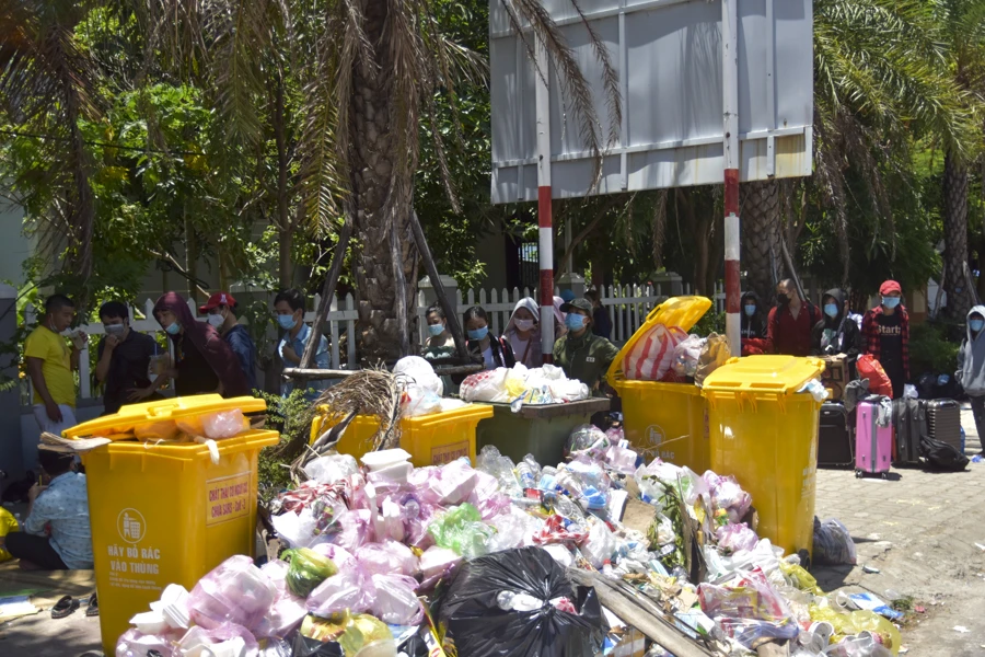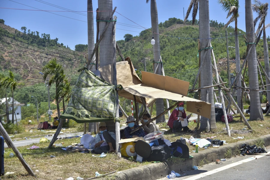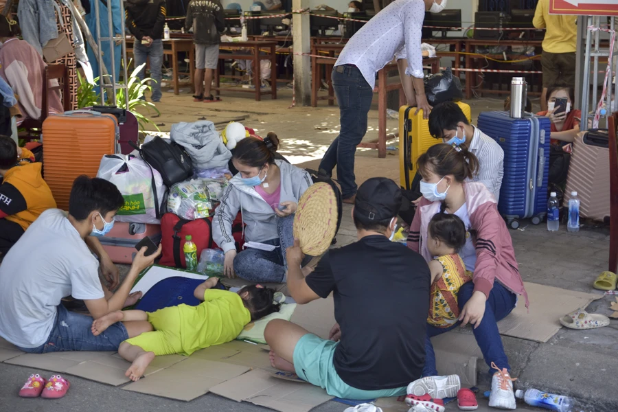 Người dân nằm, ngồi vật vờ chờ đi cách ly tập trung. Ảnh: NGUYỄN DO