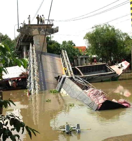 Nhớ lại sự việc, một người dân cho hay: Lúc đó có xe tải chở 20 tấn bột mì và một xe ba gác chở lúa đang lưu thông qua cầu thì đoạn giữa của cầu bị sập, ô tô tải lẫn xe ba gác rơi xuống kênh.