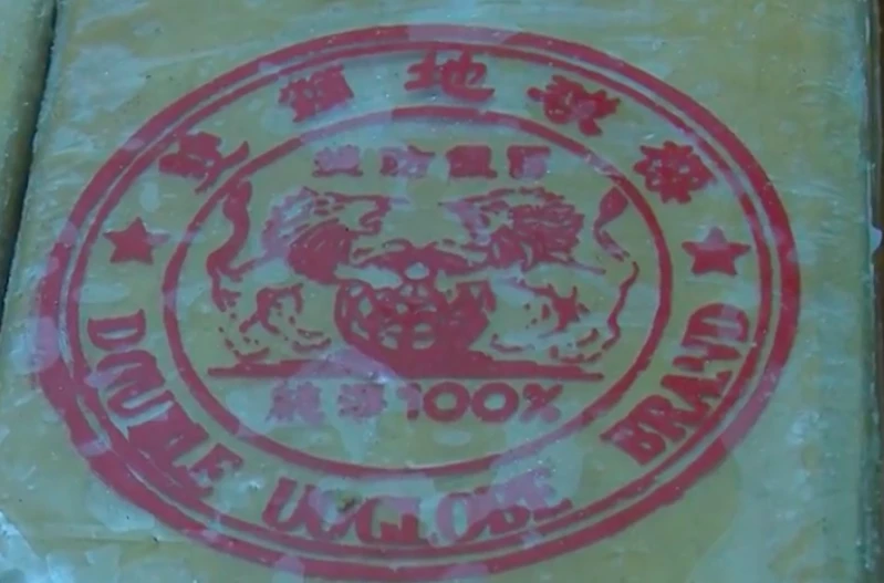 Ở vòng tròn phía trong, bốn chữ 提防假冒 tạm dịch là “cảnh giác hàng giả”, hai chữ 純淨 100% phía dưới dịch là “thuần khiết 100%”. Nhãn hiệu này là một hãng thuốc khá nổi tiếng có bán nhiều ở Myanmar và Thái Lan (có thể bị kẻ xấu lợi dụng ngụy trang để vận chuyển ma túy).