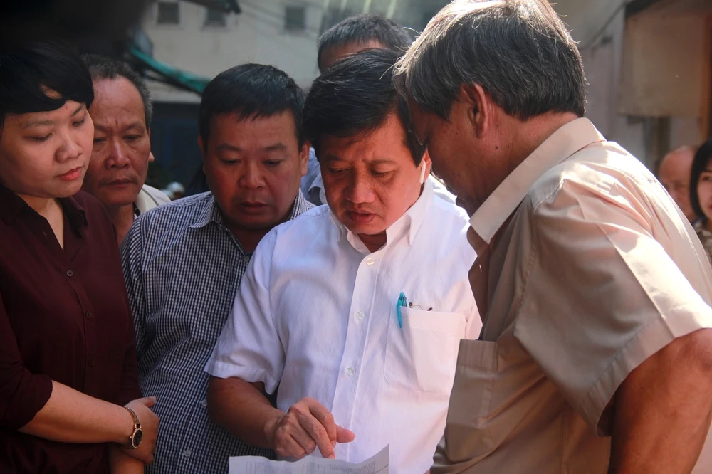 Ông Đoàn Ngọc Hải, Phó chủ tịch UBND quận 1, trực tiếp có mặt để chỉ đạo công tác di dời các hộ dân tới nơi an toàn.