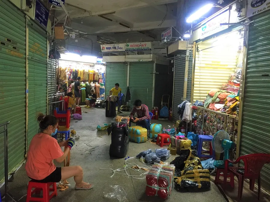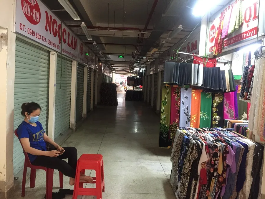 “Các sạp cho biết tạp đóng cửa 15 ngày tránh dịch. Nếu mở sạp lúc này chắc cũng không có khách đến. Một số tỉnh việc lưu thông khó khăn nên các mối mang cũng không lấy hàng” - chị H tiểu thương kinh doanh quần áo cho biết.