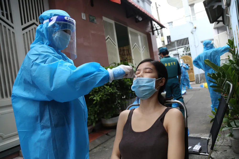 Lấy mẫu xét nghiệm cho người dân tại TP.HCM. ẢNH: HOÀNG GIANG