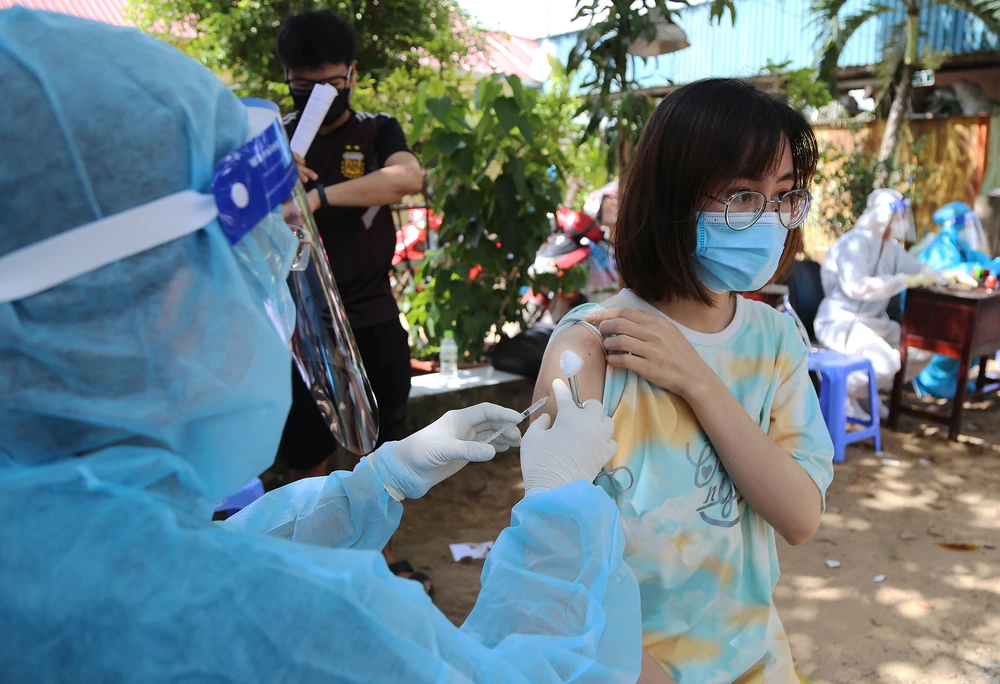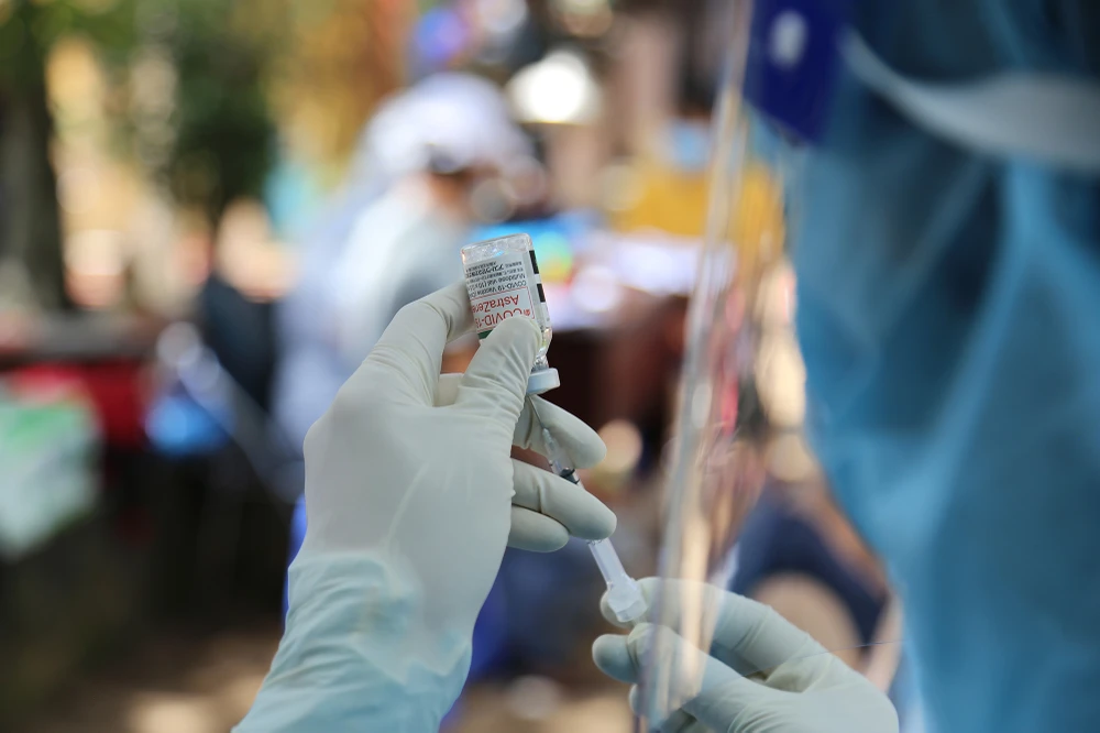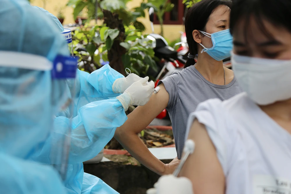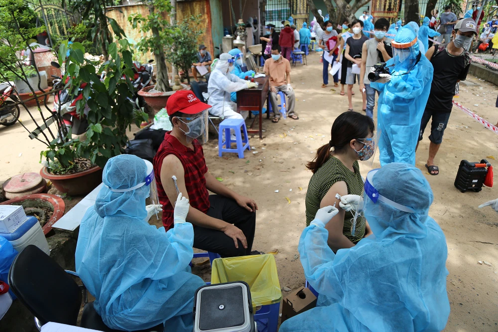 Người dân trong khu phong tỏa khu phố 6 được tiêm vaccine của AstraZeneca.