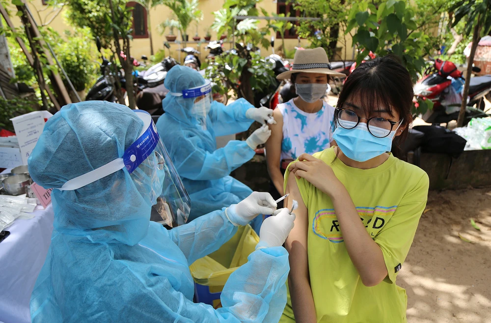 Quá trình tiêm vaccine diễn ra nhanh chóng, người dân được nhắc nhở giữ khoảng cách để phòng dịch.