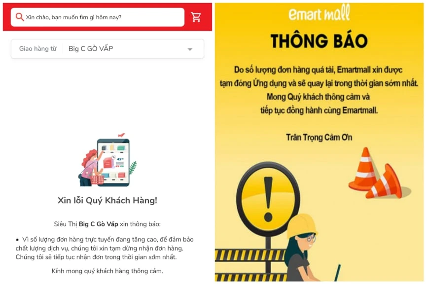Phía siêu thị Go, Big C cũng thông tin ở hiện nay hệ thống giao hàng online của siêu thị tại TP.HCM và Bình Dương, Cần Thơ, Đồng Nai... cũng thông báo tạm dừng nhận đơn hàng mới, do số lượng đơn hàng trực tuyến đang tăng cao.