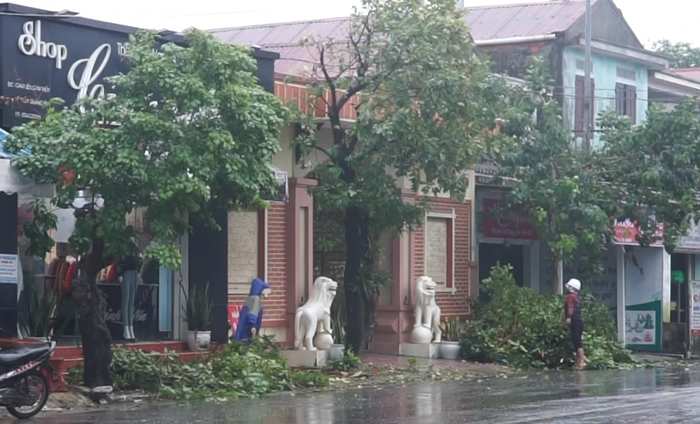 Một số cây xanh được người dân xã Cam Thủy (huyện Lệ Thủy, tỉnh Quảng Bình) cắt tỉa để tránh bão quật ngã.