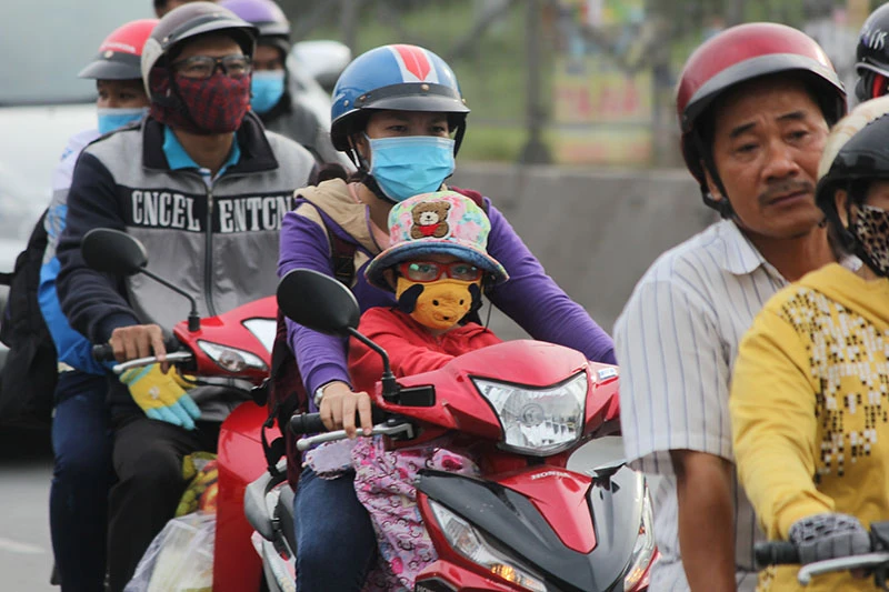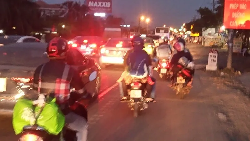 Người dân di chuyển về TP.HCM qua đoạn huyện Cai Lậy, tỉnh Tiền Giang.