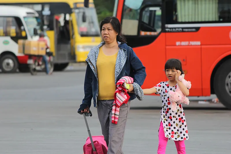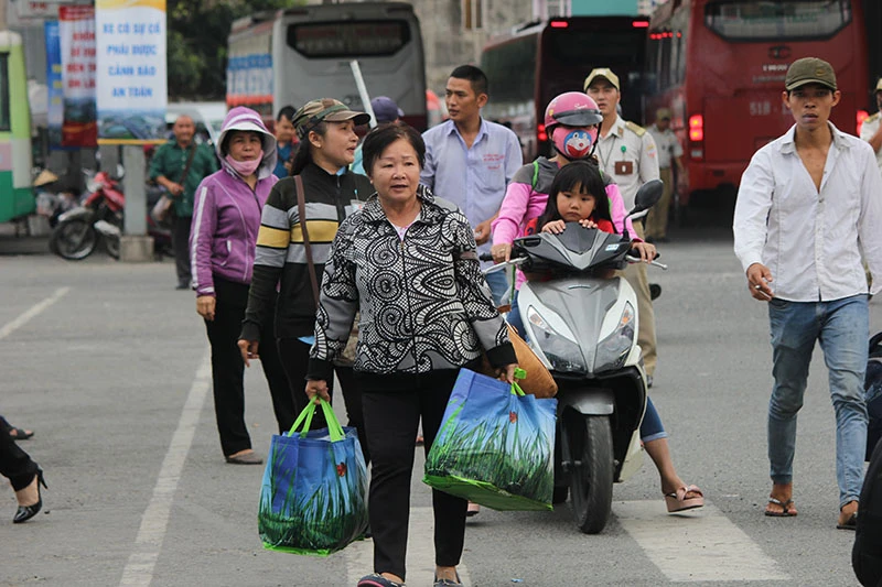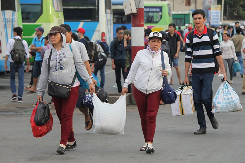 Chị Hồng cùng con gái đi xe khách từ Tiền Giang lên TP.HCM cho biết, dù chưa đến ngày đi làm nhưng chị lên sớm để tranh thủ dọn dẹp nhà cửa sau Tết.