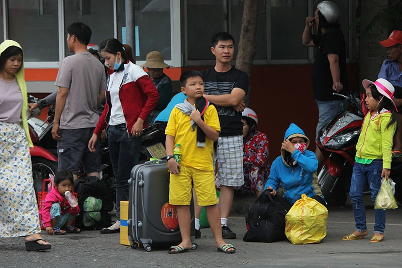 Nhiều em nhỏ cũng theo bố mẹ trở lại thành phố tỏ ra mệt mỏi sau chặng đường dài di chuyển.